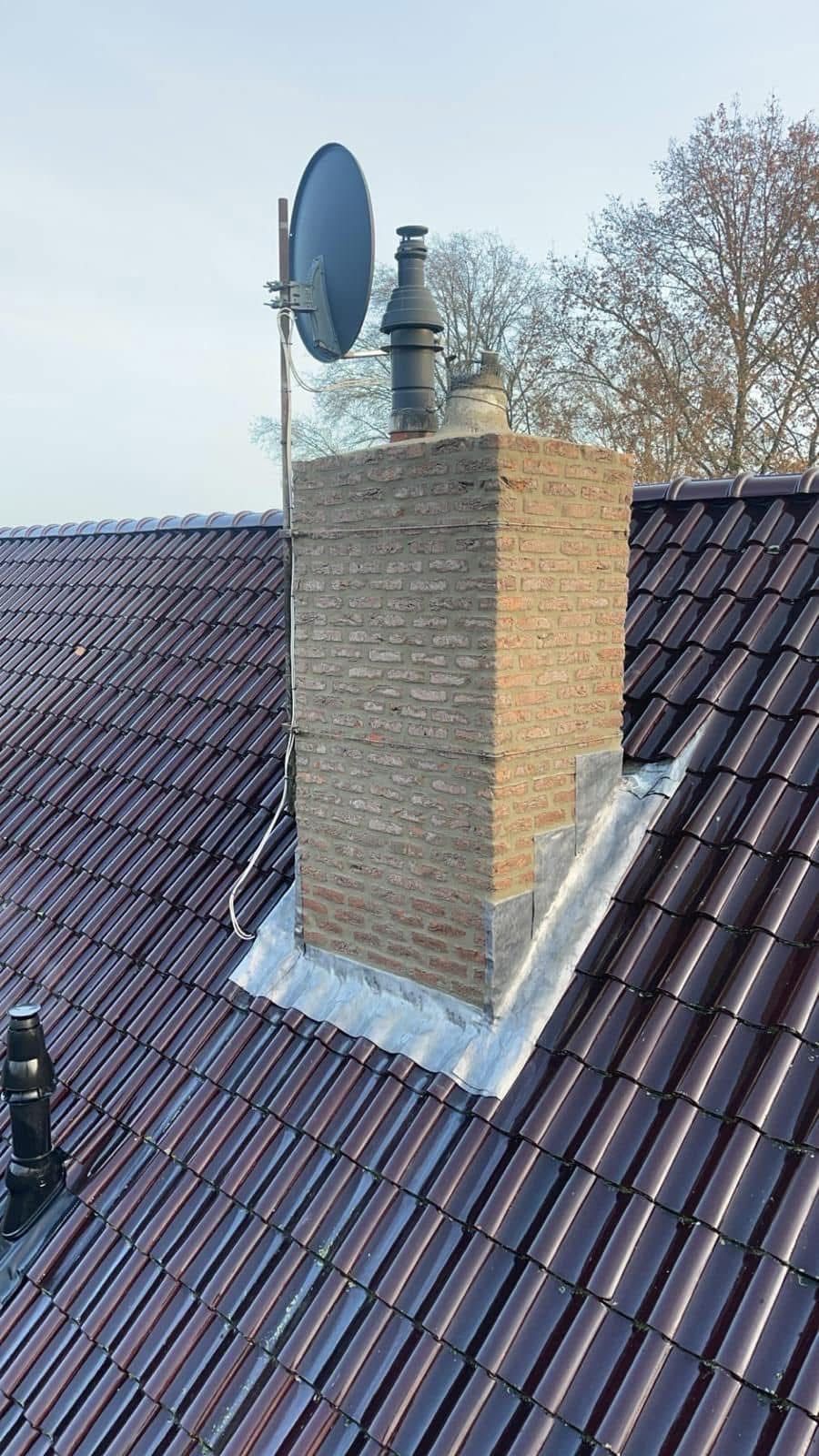 Renovatie van metsel- en voegwerk, vernieuwen van loodslabben, en plaatsen van schoorsteenkappen voor duurzame, waterdichte afdichting.